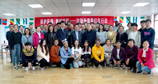 10月21日下午,在基础教学部直属党支部的精心筹备和后勤管理处的大力支持下,一场别开生面的中外师生“垃圾分类”主题知识竞答活动在明德楼410教室精彩举办。院党委副书记周传林出席活动,后勤管理处、基础教学部(国际合作与交流办公室)党政负责同志以及基础教学部、后勤管理处党员和教师代表,全体在校外国留学生、“一带一路一家人”学生志愿者参加。