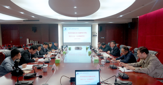 3月30日下午,山东交通职业学院院长王心一行来院考察调研,院长张毅,副院长杨益明热情接待了到访嘉宾,办公室、教务处、轨道交通学院、运输管理学院主要负责人陪同接待。