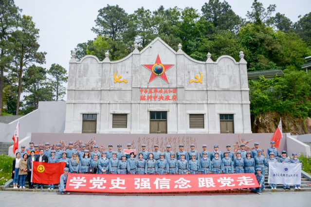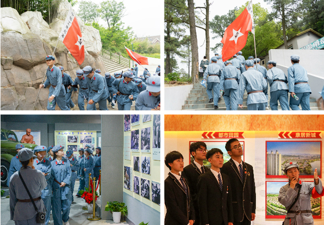 为进一步深化团员青年党史学习教育成效,引导他们赓续红色血脉、担当时代责任。五四青年节前夕,学院组织团干部、“青马工程”学员和部分团员骨干赴溧水区大金山国防教育基地开展党史学习教育实践。在长征广场,团员青年重温了入团誓词。师生们换上红军服,重走长征路,开展体验式教学,从突破湘江、遵义会议、四渡赤水、飞夺泸定桥、强渡大渡河、爬雪山过草地、胜利会师等体验项目中感受中国工农红军艰苦卓绝的伟大长征壮举。在党史教育馆,师生们认真观看展览听取讲解,从沉浸式教学中感受中国共产党波澜壮阔的百年奋斗史。在雷锋文化馆,师生们回顾了雷锋生平事迹,学习雷锋精神,还参观了禁毒教育馆、军械广场。