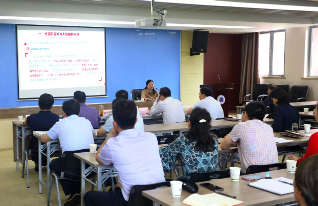会上,贾俐俐书记分别从全国职业教育大会精神、全面提升高职学校办学治校水平、新时代高职院校课程思政建设的实践、推动职业教育培训工作创新发展、“双师型”教师队伍建设探索与实践五个方面进行了分享。她指出,当前职业教育进入新的发展机遇期,全国职教大会的召开和习近平总书记关于职业教育“前景广阔、大有可为”的指示精神为新时期职业教育的发展指明了方向。我们要树立科学的职教理念,全面把握新时期职业教育的重点任务,健全多元融合的办学格局,构建灵活多样的育人模式,进一步理顺学校管理体制机制,特别是在思政课程与课程思政协同育人,深化产教融合与育训结合,“双师型”教师建设,完善学校治理体系等方面精准发力。