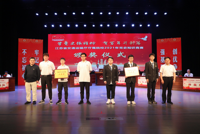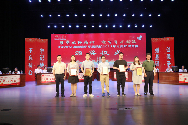 学党史振精神,贺百年开新篇。5月28日,由江苏省交通运输厅主办的厅属院校党史知识竞赛在江苏航运职业技术学院举办。学院施南峰、支锦程、周润仁三名同学组队参赛。大赛设“对答如流”必答题、“争分夺秒”抢答题、“非你莫属”风险题三个环节,题目以“四史”为主要内容。学院参赛队凭借迅速反应和沉着应对最终荣获二等奖,马克思主义学院姜志祥老师荣获优秀指导教师。