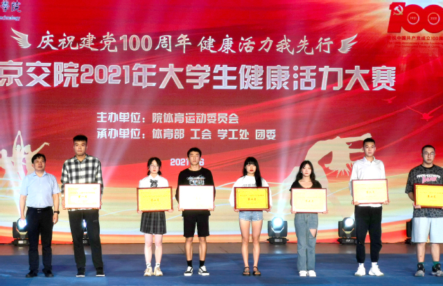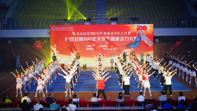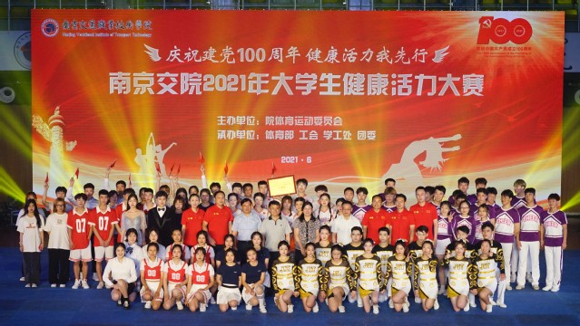 在迎接中国共产党建党100周年之际,为激发全校师生爱国热情,热情讴歌党的百年辉煌历程,营造校园红色文化氛围,6月17日晚,由校体育运动委员会主办,体育部、工会、学工处、团委共同承办的“庆祝建党100周年,健康活力我先行”南京交院2021年大学生健康活力大赛暨颁奖晚会在行健馆隆重举行。学院党委书记贾俐俐,纪委书记崔建宁,副院长杨益明、王道峰等院领导,相关职能部门、各二级院系部门负责人出席并观摩了比赛。