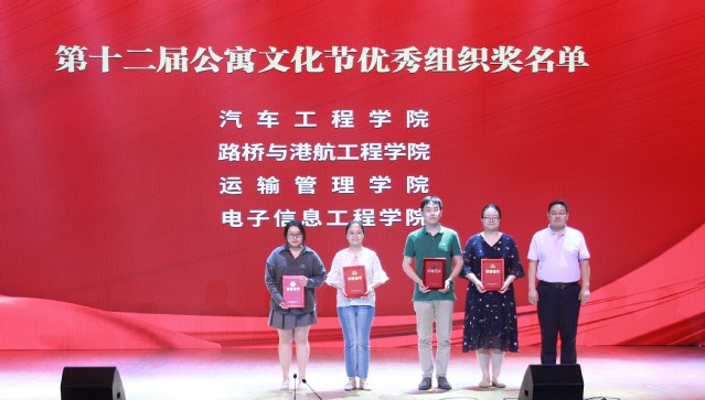 晚会在热情洋溢、青春阳光的开场舞中拉开帷幕。舞蹈、相声、小品、朗诵、手语操、歌曲等多种节目类型精彩上演,既反映了大学生丰富的公寓文化生活,又展示了同学们的艺术才华,节目紧扣主题,引起观众共鸣,博得台下阵阵掌声。尤其是在《致敬最美的人》环节中,通过《感谢可爱的你们》短视频播放,回顾了公寓生活辅导员工作中的感人点滴,形象真实地再现了他们在化解宿舍矛盾、解决学生生活难题、服务学生成长中的无私付出和以校为家的忘我精神风貌,深深感染了在场的每一位观众,再一次把现场气氛被推向新的高潮。本届公寓文化节以“寝”学修德、“宿”写华章为主题。从2020年11月开始,历时半年多,相继举办了公寓座谈会、模范学生之家评选、爱国卫生月、示范宿舍挂牌、演讲比赛、绘画作品征集、征文比赛等10多项形式多样,主题突出,内容丰富,特色鲜明的活动。先后有6000余名学生直接参与,近1000间宿舍获得奖励,并对首批遴选出的学霸、学生党员、退伍士兵及主要学生干部等75间示范宿舍进行了挂牌。汽车工程学院、路桥与港航工程学院、运输管理学院、电子信息工程学院荣获本届公寓文化节优秀组织奖。