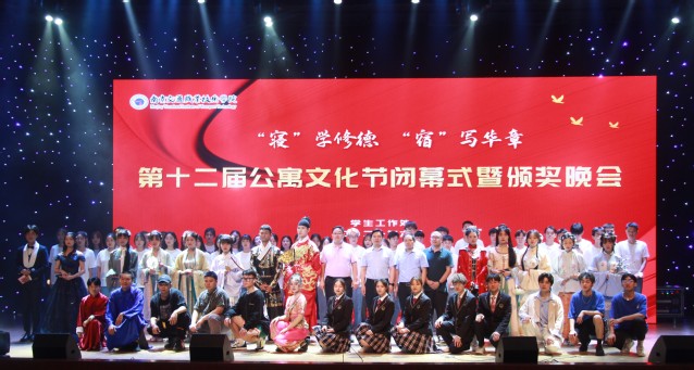 6月24日晚,学院第十二届公寓文化节闭幕式暨颁奖晚会在图书馆报告厅隆重举行。学院副院长王道峰出席闭幕式并为示范宿舍进行了授牌。党委宣传部、学生工作处、团委、保卫处、后勤管理处等部门相关负责同志,各二级院(系)党总支副书记、政治辅导员代表,全体生活辅导员及500余名学生一同观看了晚会。