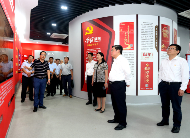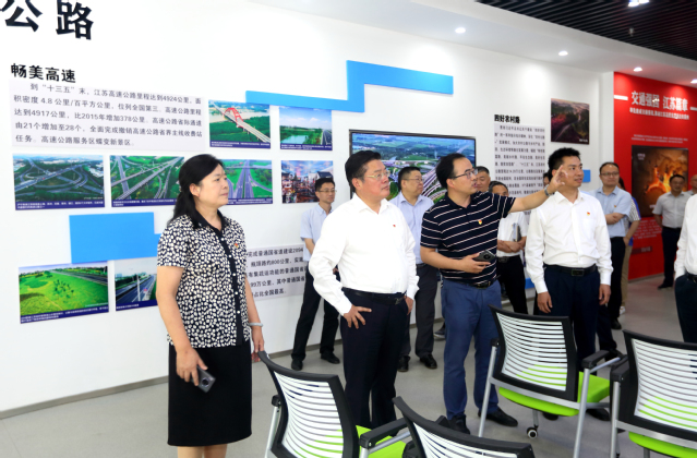 史国君书记一行参观了“学习强国”南京交院线下体验馆,贾俐俐书记介绍了学院党史学习教育开展情况,两校围绕党史学习教育各自的经验做法、特色亮点、工作成效作了交流,并就高质量推进党史学习教育进行了认真探讨。史国君书记一行随后参观了轨道交通综合实训中心,就学院交通人才创新培养工作作了深入了解。