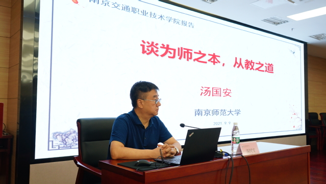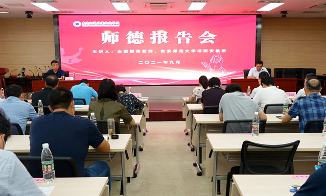9月9日下午,学院庆祝第37个教师节暨师德专题教育动员大会、师德报告会在图书馆B203报告厅举行。党委书记贾俐俐同志作动员讲话。全国模范教师、国家级教学名师、南京师范大学博士生导师汤国安教授莅临学院作题为《谈为师之本,从教之道》的师德专题讲座。全体校领导、中层干部在线下主会场参加大会,全体教职工在线上分会场参加大会。张毅院长,杨益明副院长分别主持师德报告会和动员大会。
