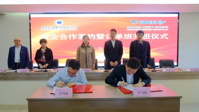 10月12日下午,学院举行与格力电器(南京)有限公司校企合作项目签约暨订单班开班仪式。学院贾俐俐书记、杨益明副院长,格力电器(南京)有限公司吴扬军总经理出席了签约仪式,参加签约仪式还有合作双方相关部门负责人、首届“格力电器班”校企班主任和全体学员。签约仪式由学院校企合作办主任吕亚君主持。