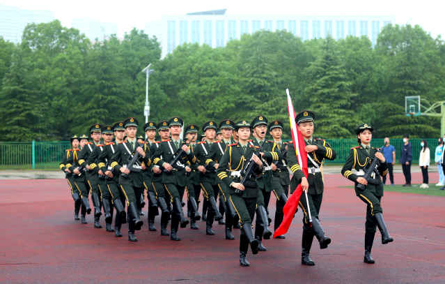 现场气氛庄严热烈。天安门广场30米新旗杆升旗第一人,36人升旗天安门国旗护卫队国旗班第一任班长,3人升旗天安门国旗班第八任班长、中国旗帜文化事业开创人、全国学校升旗手总教官赵新风为学院国旗班授旗。在全体师生的注目下,英姿飒爽的国旗班队员身着戎装、手握礼宾枪,迈着坚定有力的步伐,护送国旗缓缓走向升旗台。伴随着威武雄壮的国歌声,鲜艳的五星红旗冉冉升起,迎风飘扬。全体师生面向国旗庄严肃立,高唱国歌,“请党放心 强国有我”红色展板与五星红旗遥相辉映,彰显赤子丹心。学生代表、轨道交通学院张馥麟同学在升旗仪式上发言。