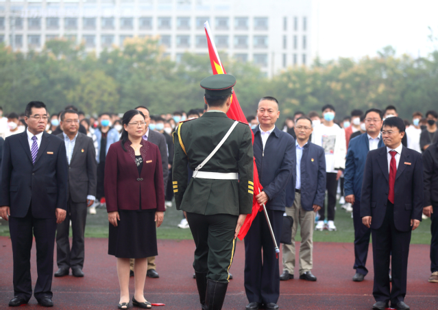 10月14日清晨,学院隆重举行升国旗仪式,4000余名师生与国旗同框,致敬最美的中国红。院党委班子全体成员,相关部门主要负责人,各党总支(直属党支部)书记,师生代表,党史学习教育领导小组办公室全体成员参加。副院长王道峰主持仪式。