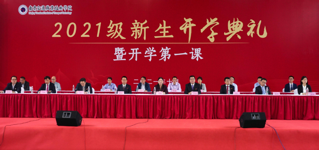 10月14日上午,学院隆重举行2021级新生开学典礼。党委书记贾俐俐,院长张毅,党委副书记周传林,纪委书记崔建宁,副院长应海宁,副院长杨益明,副院长王道峰出席;相关职能部门和院系主要领导参加。副院长王道峰主持开学典礼。来自全国12个省份的4300余名新同学齐聚一堂,开启了与南京交院携手并进的人生新篇章。