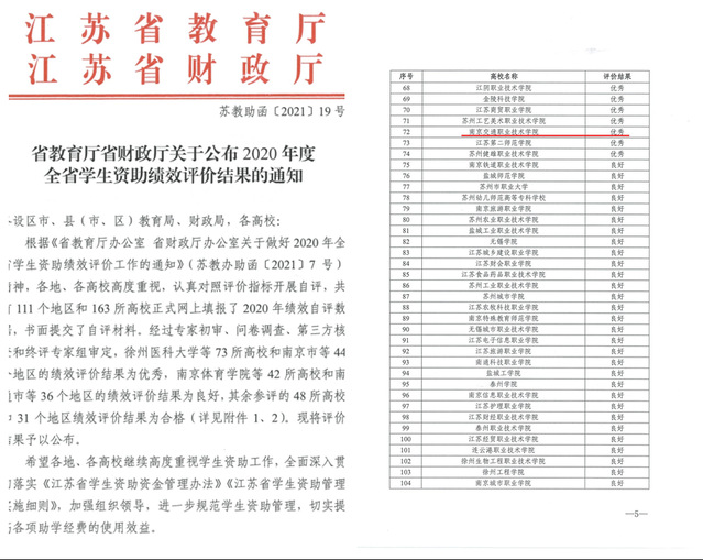 近日,省教育厅、省财政厅公布了2020年度全省学生资助绩效评价结果。经专家初审、问卷调查、第三方核查和终评专家组审定,学院资助工作在本次全省学生资助绩效评价中荣获“优秀”等级,这也是学院连续三年获此殊荣。