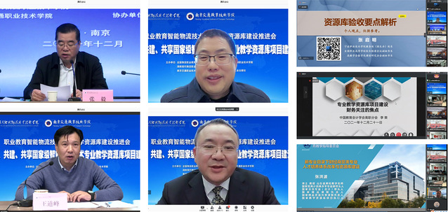 12 月 21日、22日,由全国物流职业教育教学指导委员会、湖南现代物流职业技术学院、南京交通职业技术学院联合主办,南京交通职业技术学院承办的职业教育智能物流技术专业教学资源库建设推进会成功召开。受疫情影响,会议以腾讯会议方式开展, 14家联建单位共同参会,在云端共商、共建、共享国家级智能物流技术专业教学资源库项目建设。学院张毅院长,王道峰副院长出席会议;办公室、财务处、教务处、运输管理学院相关负责人及教师代表参加。会议由王道峰副院长主持。