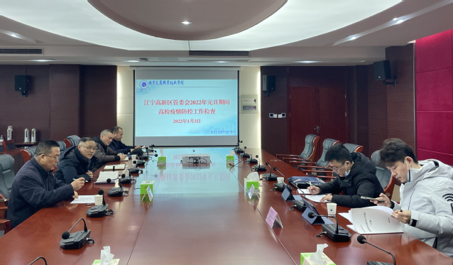 2022年1月3日上午,江宁高新区管委会大学城创新与服务办公室副主任李振一行来校开展2022年元旦期间驻区高校疫情防控工作检查。学院党委副书记周传林,校疫情防控工作领导小组办公室各专项工作组组长出席。