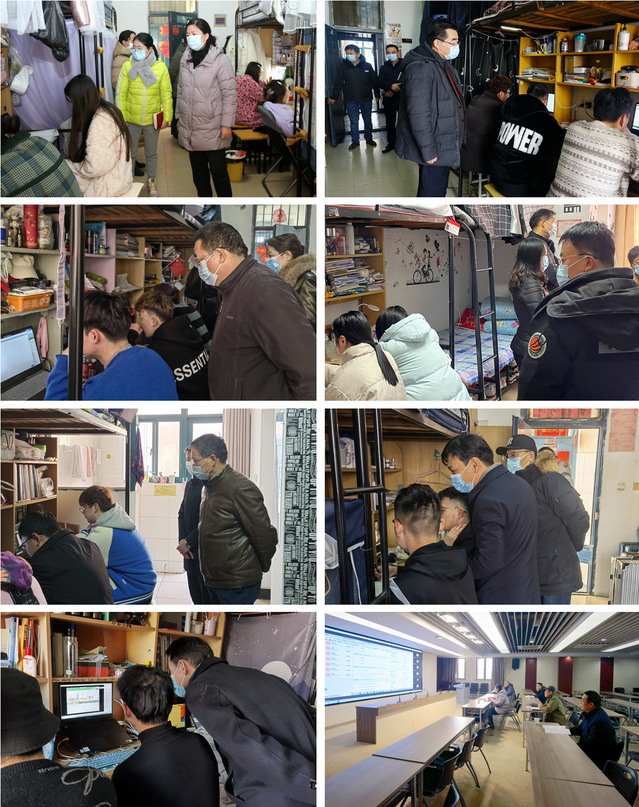 院领导走进学生宿舍,详细检查了学生线上学习、师生教学互动情况,了解学生们的住宿环境、生活设施、疫情防控等日常保障,认真听取学生反映的实际困难和意见建议。在弘毅楼223,院领导通过教学监控平台随机调看检查了网课教学情况。从检查情况来看,各班级都能严格按照校园防疫和线上教学相关工作要求开展线上教学,教学运行秩序井然,整体效果良好。