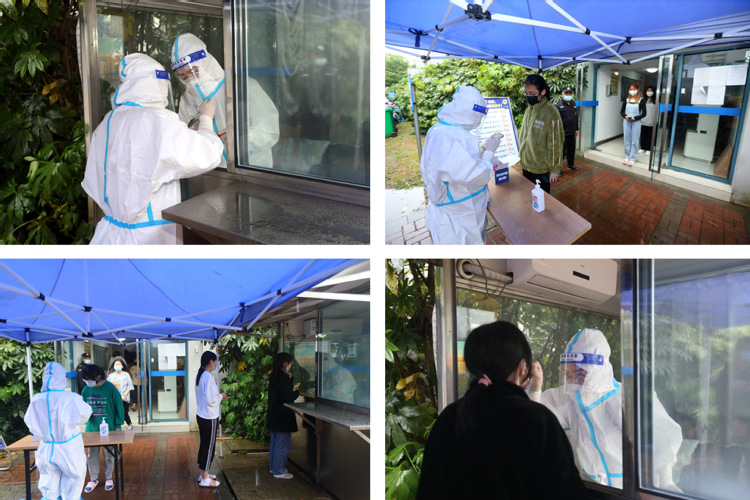 检测组第一时间到I楼联合后勤保障组布置核酸检测场地(安装帐篷,桌椅,标线等),接驳核酸检测医务人员到现场有序开展核酸采集;采集结束后,联系消杀组进场进行场地消杀。