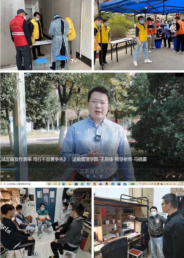 在本次疫情防控阻击战中,涌现出众多投身疫情防控志愿服务的青年教师,他们迎难而上、无私奉献,用忠诚和担当构筑起了打赢疫情防控阻击战的坚固防线,为战“疫”贡献自己的一份青春力量。运输管理学院辅导员马晓雷同志就是其中一员,面对疫情,他一马当先,义不容辞扛起各项重任,深入学生,了解学生实际需求,扎实推进学生疫情防控、资助专项、思想政治教育等各项工作,用实际行动诠释自己的奉献精神。