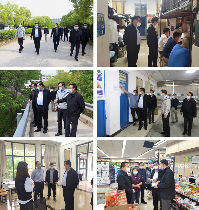 张院长一行先后来到校园西大门、南大门快递消杀存放接驳点、核酸检测点、校园围栏、快递站、商贸街、学生宿舍,详细检查了解人员及车辆进出校园台账和值班台账、快递运输消杀处理流程、当天核酸检测进展及人员防护、校园围栏管控等疫情防控措施落实情况,对存在的安全隐患提出了整改要求。