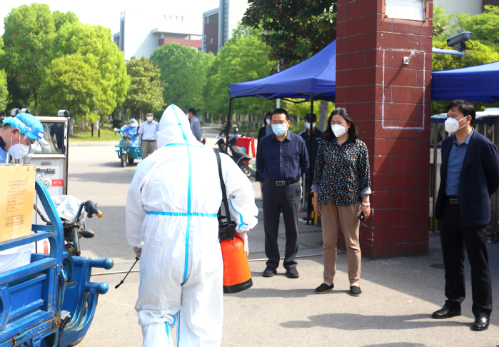 贾书记一行先后来到校园西大门、南大门快递接驳点、快递代收点、新冠疫苗接种点、食堂后场及物资储备区、超市、集中隔离点、学生公寓、商贸街,检查校园疫情防控工作常态化运转情况,现场随机抽查了门岗、快递点、厨房仓库管理等重点岗位当班人员对本岗位职责与应急处置流程的知晓情况。从检查情况看,校园疫情防控工作整体通畅有序;前期督查中发现的薄弱环节已整改到位;各重点区域当班值守人员均守岗尽责、知行合一,在做好自我防护的同时安全防控措施到位。巡查中,贾书记一行还对防疫处置中的重点环节作了提醒指导。