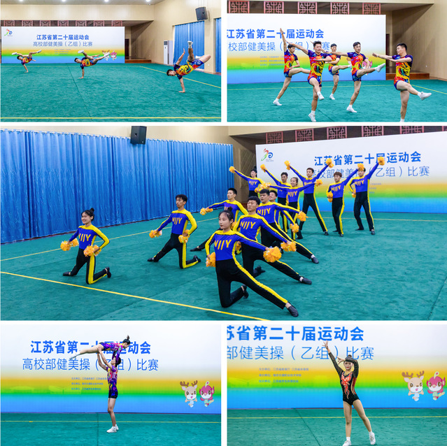 省运动会分青少年部、高校部、社会部三部分比赛,每四年举办一次。江苏省第二十届运动会高校部健美操(乙组)比赛由江苏省教育厅、江苏省体育局主办,南京交通职业技术学院承办,江苏省学生体育协会协办,省内共有13支高职院校队伍参赛。学院共派出15支校运动代表队参加了全部高校部(乙组)比赛预选赛,经过艰苦训练和积极比赛,共有12支队伍进入了最后总决赛,分别是:女子篮球、男子足球、女子足球、气排球、乒乓球、羽毛球、网球、田径、健美操、跆拳道、轮滑、飞镖等项目,进入总决赛项目数也是学院参加历届省运会之最。