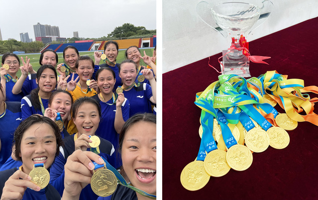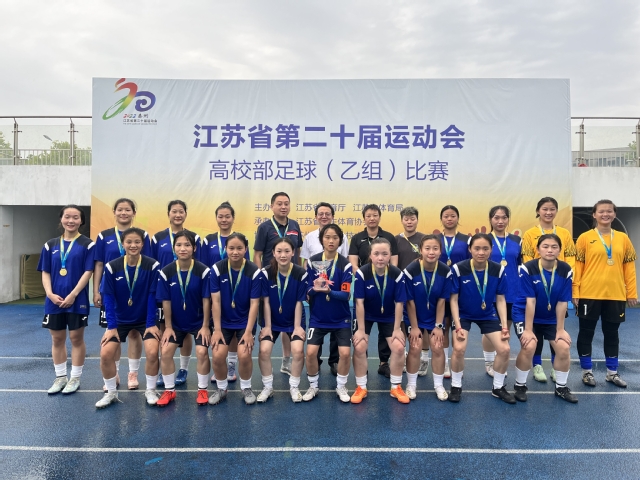 江苏省第二十届运动会高校部足球(女子乙组)比赛由江苏省教育厅、江苏省体育局主办,苏州工业职业技术学院承办,江苏省学生体育协会协办,省内共有近30支高职院校队伍参赛。经过前期预选赛,学院女足代表队经过艰苦训练和积极比赛,最终以南京赛区第一名的身份进入了最后总决赛,总决赛共8支队伍参赛,小组赛1:0胜扬州工业、1:0胜常州纺织服装,以小组第一身份出线;交叉赛3:0胜江苏卫生健康,半决赛1:0胜苏州工业。7月17日,与常州纺织服装职业技术学院进行最后一场冠军争夺战,交院女足团结一心,奋力拼搏,最终以1:0赢得胜利,获得本届省运会冠军。