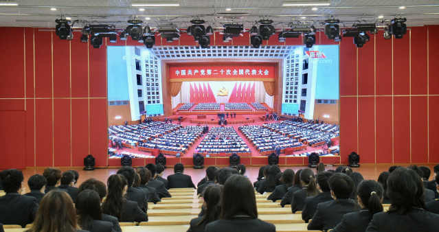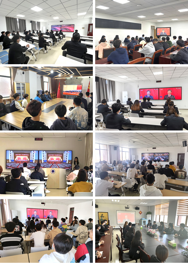 举世瞩目的中国共产党第二十次全国代表大会10月16日上午在北京人民大会堂隆重开幕,习近平总书记代表第十九届中央委员会向大会作报告。学院党委高度重视,在图文信息楼、大学生活动中心设置转播点,部署各二级院系党总支安排集中收看点,校园广播开通实时转播。学院党委理论学习中心组成员集中收看学习,广大党员干部和师生员工在会议室、教室、宿舍等场所以各种形式收听收看二十大开幕盛况,聆听习近平总书记在中国共产党第二十次全国代表大会上的重要讲话,共同庆祝党的二十大胜利召开。