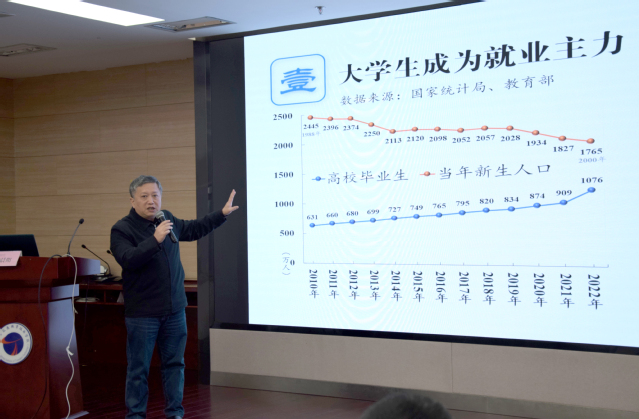 江苏省高校招生就业指导服务中心党总支委员蒋晨阳通过对全省和学院毕业生调研数据的分析,深度解读了学院近三年毕业生培养质量情况。他对南京交院毕业生的就业质量和人才培养质量作出了高度评价,特别在疫情常态化下,学院毕业生的就业质量在省内仍保持较高水平,在岗位来源、专业相关度、地区贡献度于全省前列,为江苏省地方经济建设培养了大量人才,形成了立足交通行业的人才培养特色。同时希望学院通过对调研数据的深入分析完善学院人才培养方案,把促进全面育人和社会需求融合作为学院就业育人的使命担当。