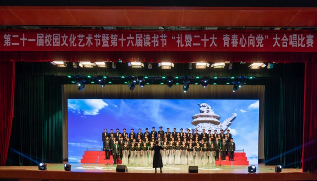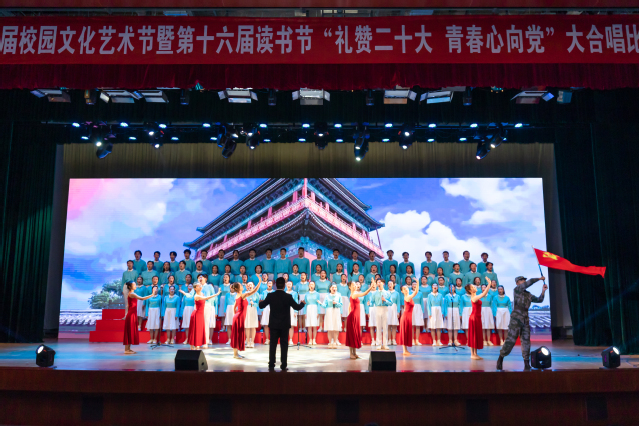 为庆祝党的二十大胜利召开,讴歌党的光辉历程和丰功伟绩,加强大学生爱国主义教育,展现学院青年学子锐意进取的良好精神风貌,11月30日下午,学院第二十一届校园文化艺术节暨第十六届读书节“礼赞二十大 青春心向党”大合唱比赛在图书馆报告厅举行。学院党委书记贾俐俐,党委副书记周传林出席活动。党委组织部部长刘雪芬、各院系党总支负责人及团总支书记观看。本次比赛通过线上平台同步现场直播,在线观看人数达5000余人。