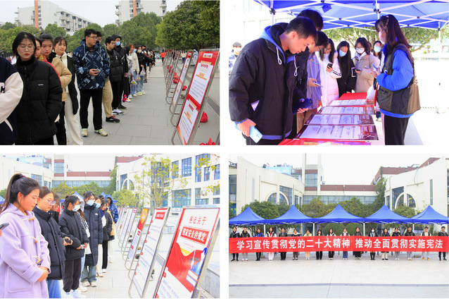 “国家宪法日”线上线下宣传教育活动。12月4日是第九个国家宪法日,也是我国现行宪法公布施行四十周年。12月3日,学院在思源堂东广场以互动答题和普法展览等形式开展了宪法主题宣传教育活动。现场,校新媒体中心的普法志愿者们引导大家参与法律知识问答;600多名同学在寒风中有序排队参与了答题,并在党的二十大和普法专题展板前驻足观看。学院还充分利用显示屏、展板、条幅、宣传栏以及网站、微信、微博等媒体平台,线上线下相结合开展“宪法宣传周”活动标语、海报、视频展播,在做好宣传教育同时营造浓厚法治氛围,推进宪法入脑入心。