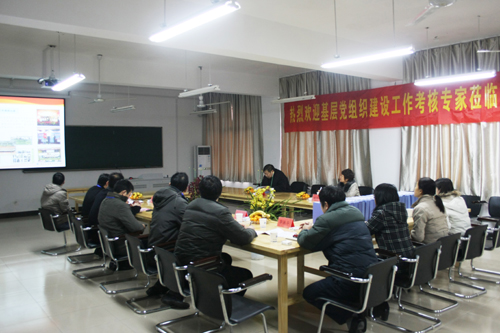 12月15日下午2:00,省委教育工委基层党组织建设工作考核组副组长、南京特殊教育职业技术学院党委书记蒋云尔和省教育厅组织处副处长沈晓冬在公路工程系考核党建工作;南京医科大学党委组织部部长冷明祥和江苏经贸职业技术学院组织人事处处长储锦超在建筑工程系考核党建工作;南通大学党委组织部部长姚志平和南京航空航天大学党委组织部副部长刘虎在管理工程系考核党建工作。