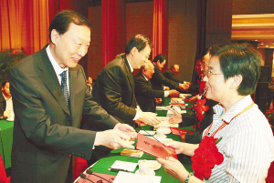 图为省委书记罗志军、省长李学勇等领导为受到表彰的先进集体、先进个人代表颁奖。