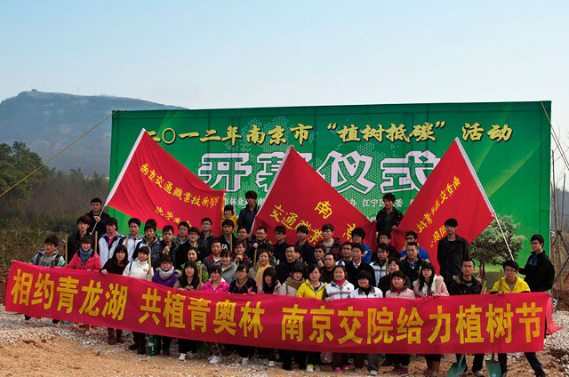 在3月12日植树节到来之际,院团委、关工委、基建办、学生会、社团联合会60余名师生乘春而行,共赴江宁青龙湖生态园开展义务植树活动,为迎接青奥会添绿增彩。院党委副书记、关工委主任许正林出席并参加了活动。