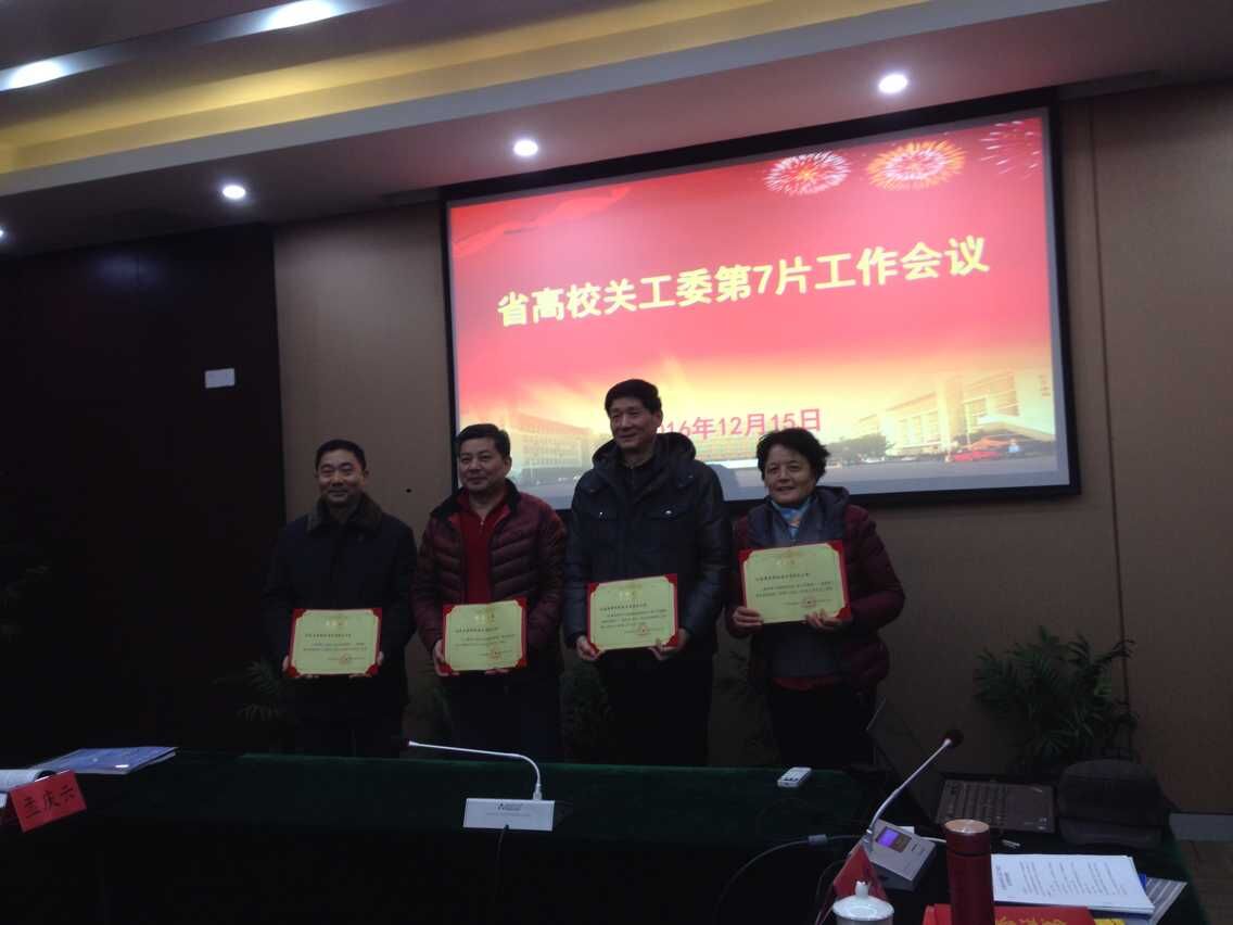 2016年12月15-16日在江苏信息职业技术学院召开了全省高校第七片关工委工作会议。我院党委书记、关工委主任贾俐俐、工会主席、关工委秘书长何卫平等三人出席了会议。