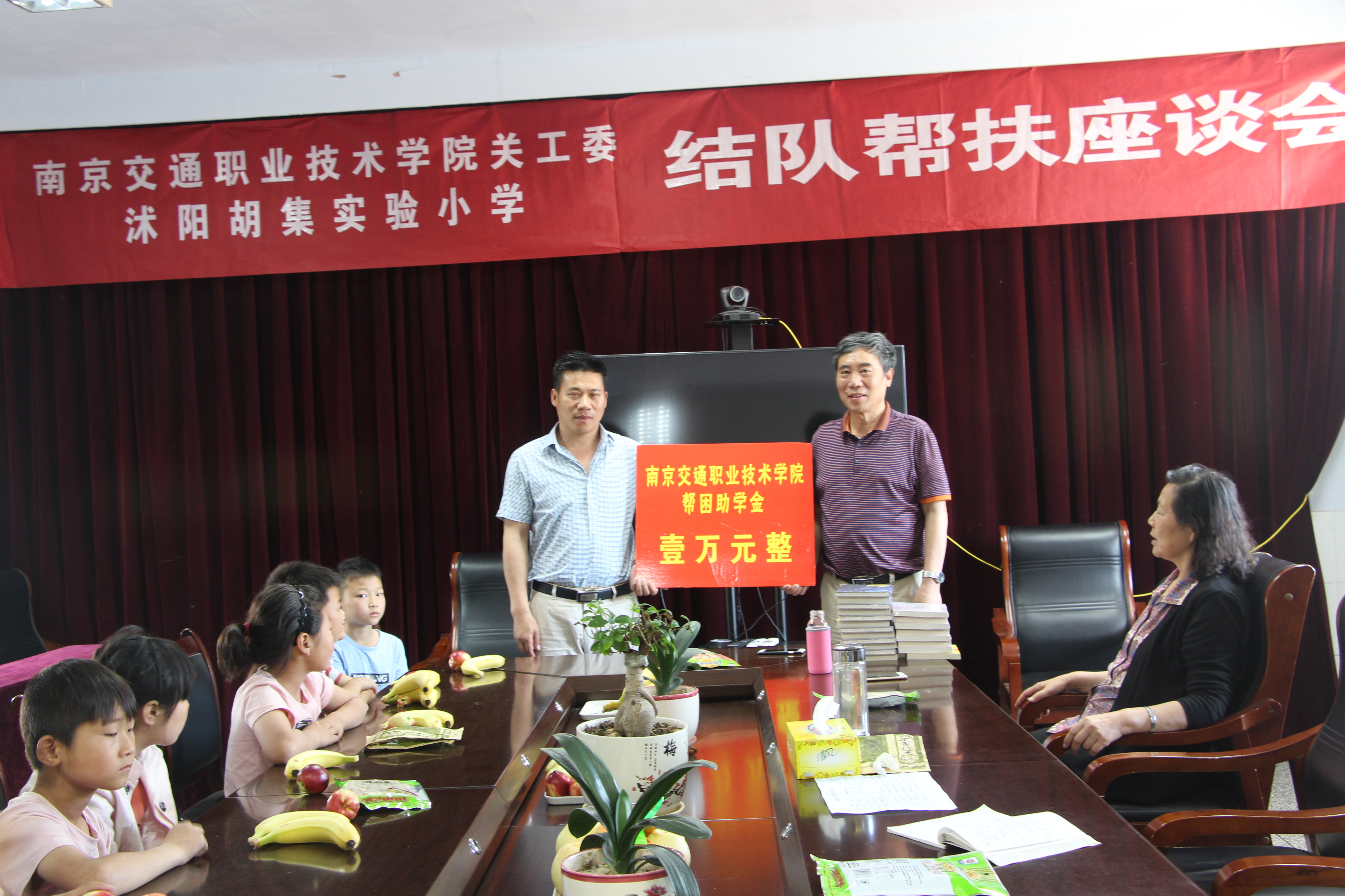 胡集中心小学顾主任介绍了结队帮扶对象的家庭、学习和生活情况。关工委胡维忠副主任转达了学校领导对胡集中心小学孩子们的关心和支持,阐述了结队帮扶活动的意义,并代表学校关工委向孩子们捐赠一万元帮困助学金。关工委老同志与孩子们进行了座谈,并为每个孩子赠送两本课外读物,鼓励他们读好书,学做人。