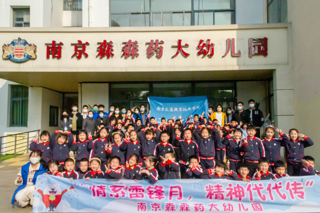 此次活动中,志愿者们给南京森森药大幼儿园的小朋友们讲述了雷锋同志的相关事迹,互动答题过程中引导小朋友们学习雷锋舍己为人的奉献精神并且在日常生活中主动服务他人,随后志愿者带领小朋友们唱《学雷锋》,玩抱团小游戏,寓教于乐,在欢快的氛围中理解团结互助的真谛。