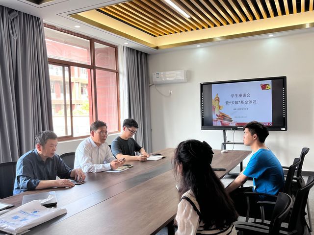 建筑工程学院关工委4月19日在广宇楼320会议室举行学生座谈会暨“关筑”基金颁发仪式。建筑工程学院关工委主任陈晋中、常务副主任唐利国、关工委秘书长王珣和部分学生代表参加。