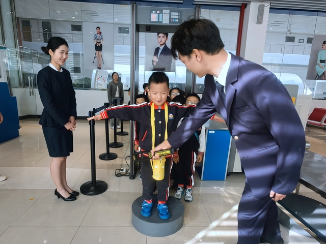 小朋友们首先来到了空乘基地,志愿者们耐心地介绍着乘机流程和空乘人员的工作职责,小朋友们纷纷扬起小脑袋,想象着自己在云端翱翔的模样。接着,大家参观了城轨实训基地、智慧物流实训基地和冷链物流实训室,小朋友们指着各种按钮和仪表,不停地问着问题,志愿者们模拟机车司机开车并进行生动的讲解,小朋友们听得津津有味,仿佛要把这个神奇的地方研究个透,实训室成了孩子们的新乐园。