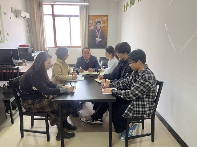 徐爱萍老师首先向党总支书记史立峰汇报近期关工委重点工作,传达上级关工委工作的最新要求。在与分团委书记刘宇的交流中,双方就学生管理痛点问题展开了深度沟通。针对学风建设、宿舍安全等焦点问题,商议如何进一步完善“辅导员-班主任-学生干部”三级联动机制,增强思政教育实效。