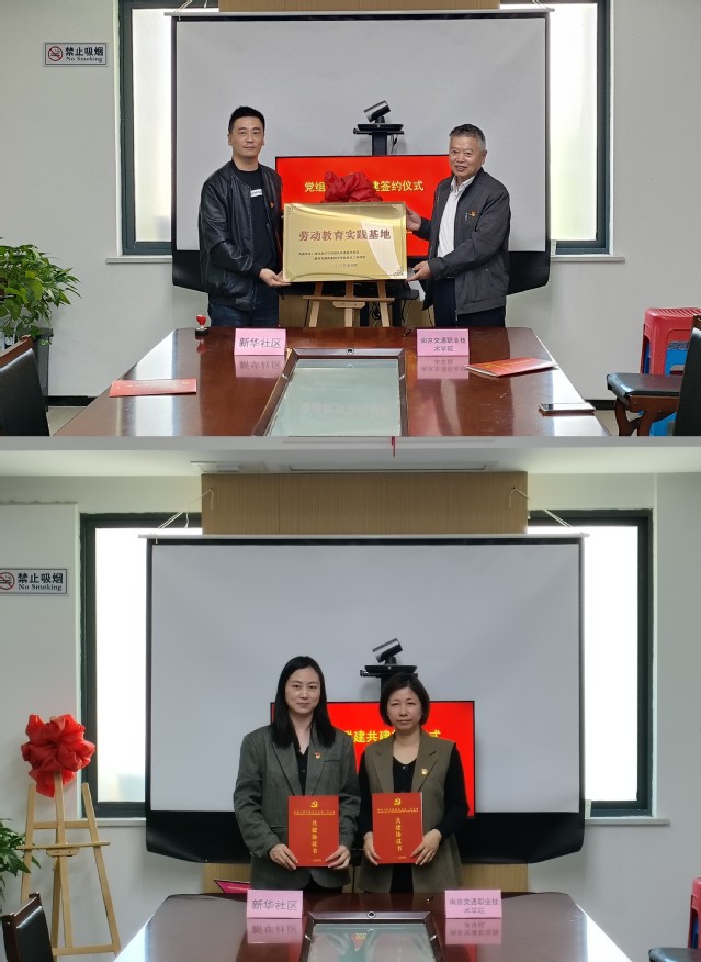 活动现场,“南京交通职业技术学院建筑工程学院劳动实践基地”正式揭牌。该基地将依托新华社区实际需求,组织大学生常态化参与社区环境整治、政策宣传、助老帮扶、青少年教育等志愿服务,推动青年学子在基层一线锤炼本领、担当作为。签约仪式后,双方党员代表与青年学生实地走访社区,调研社区花园、“江宁书房”、亲子屋、改造示范点等治理项目,并就“社区微更新”“智慧化治理”等议题展开交流。