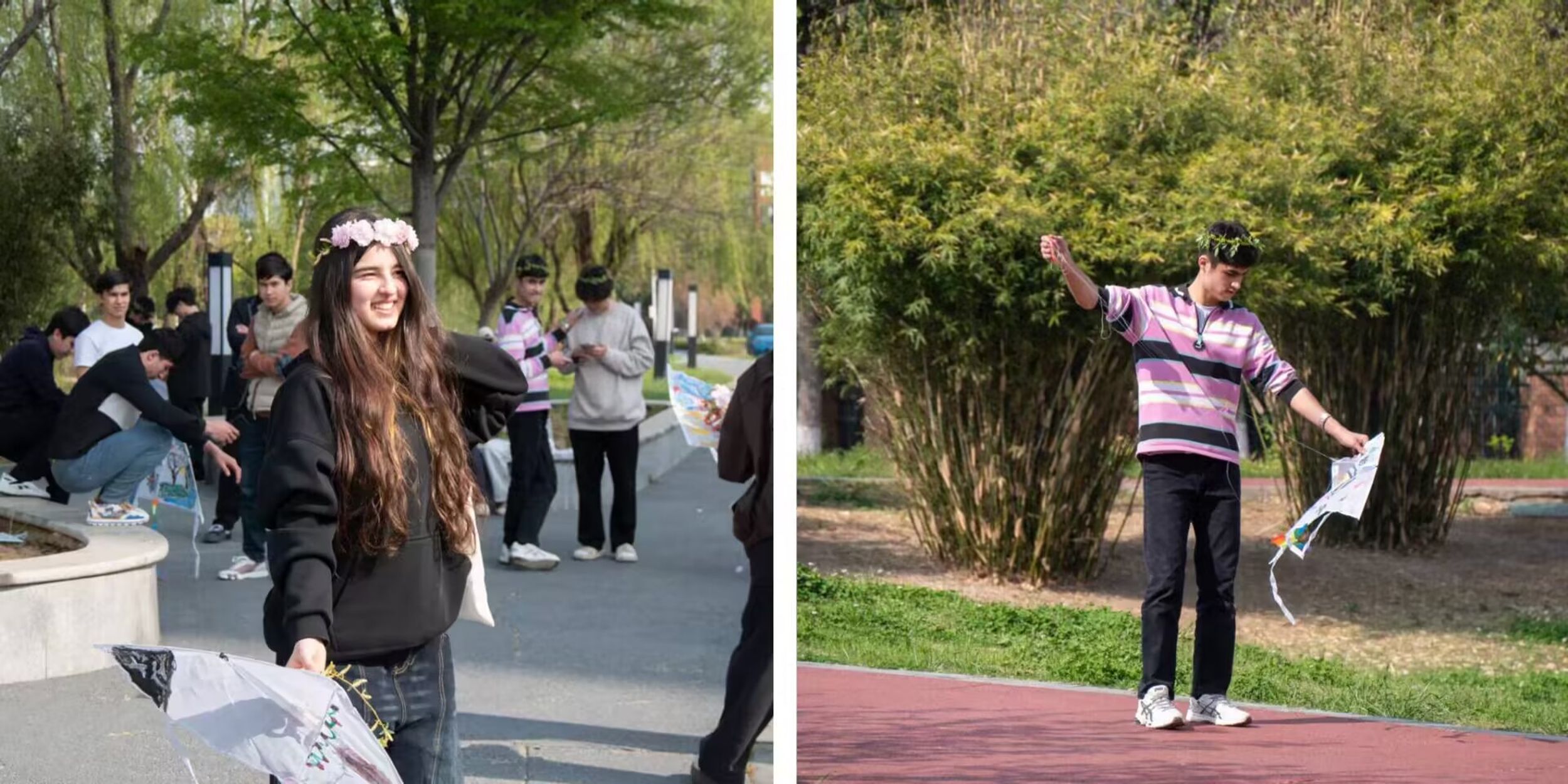 实践环节,中外学子一起化身“春日匠人”,纷纷动手绘制风筝、编制柳条,阳光下,灵巧的风筝肆意奔跑,摇曳的柳条沙沙作响,传统文化与欢声笑语相互应和。乌兹别克斯坦学生迪马有感而发:“祭奠逝者时心怀感恩,放飞纸鸢时拥抱新生,这是中国人对生命循环的深刻理解!”