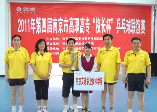 5月21日,第四届南京市高职高专“校长杯”乒乓球联谊赛在南京化工职业技术学院落下帷幕。本次比赛由南京高职高专校长杯联谊会主办,南京化工职业技术学院承办。共有12个在宁高职院校参加了比赛。 学院代表队在一天比赛中,团结协作,奋力拼搏,充分展现了院领导团结一致、开拓进取的精神风貌,最终取得了团体第三名的好成绩。这也是学院代表队参加“校长杯”以来取得的最好成绩。
