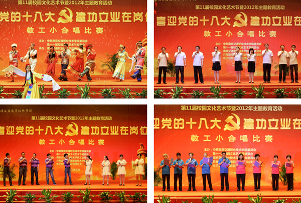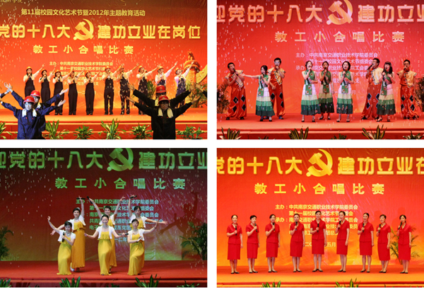 此次比赛由院工会、团委、电子信息工程系共同组织举办。学院各基层党组织坚持把此项活动作为创先争优与和谐校园建设的载体,紧紧围绕活动主题,广泛发动,认真组织排练。经过激烈角逐,路桥工程系党总支、国际教育学院(外语部)直属党支部荣获一等奖,电子信息工程系党总支、机关党总支、教务第二党总支、建筑工程系党总支获二等奖,运输管理系党总支、机电工程系党总支、后勤产业党总支、人文艺术系党总支、教务第一党总支、汽车工程系党总支、离退休党总支获三等奖。院领导分别为获奖代表队颁奖。