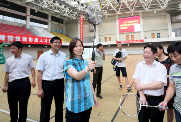 6月24日下午,我院教职工羽毛球俱乐部在行健馆举行成立仪式。羽毛球世界冠军、南京市体育局副局长葛菲亲临现场。院党委书记贾俐俐、副院长应海宁与全体教职工羽毛球俱乐部会员和部分羽毛球运动爱好者一同出席了活动。