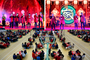 学院大学生艺术团喜庆祥和的《金猴闹春》和激越动感的《水鼓》表演拉开了联欢活动序幕。
