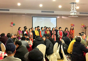 团拜现场,各位老同志纷纷表演了自己精心编排的节目,气氛热烈融洽。