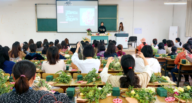 为庆祝建党100周年和第111个国际“三八”妇女节,丰富女职工文化生活,提高女职工美学素养及审美能力,近日,学院工会在修远楼102举办了“巾帼心向党·奋进新时代”三八妇女节系列活动之四——插花艺术培训,活动吸引了270多名女职工参加。