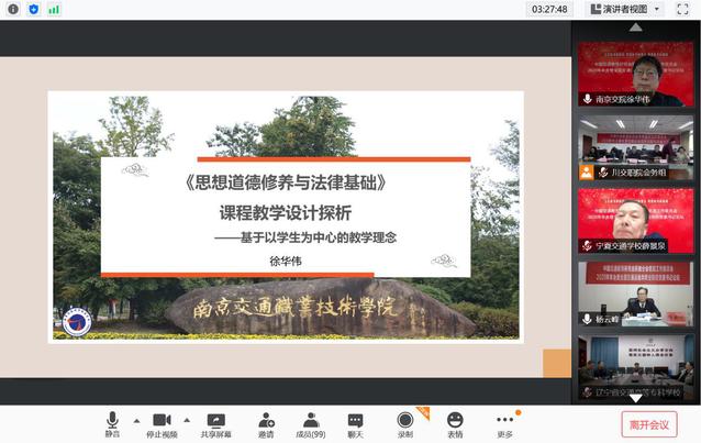 马克思主义学院徐华伟老师提交的学术论文《<思想道德修养与法律基础>课程教学设计探析——基于以学生为中心的教学理念》在本次大会中荣获一等奖,并应邀在会上作了交流发言。徐老师在发言中阐述了“基于以学生为中心教学理念”下《思想道德修养与法律基础》课程的教学目标、教学形式、教学内容、教学方法和考核方式整个教学过程的设计思路,并结合南京交院《思想道德修养与法律基础》课程教学改革实践作了充分论证,受到与会老师的一致好评。