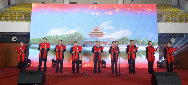 全体院领导在视频中祝愿全体师生员工新年快乐,万事如意;并登上舞台为全体师生员工献上小合唱《走向复兴》,用歌声祝福南京交院事业蒸蒸日上。