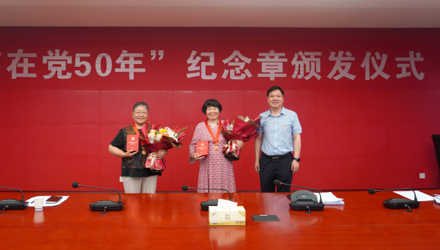 七一前夕,学院举行“光荣在党50年”纪念章颁发仪式,为党龄满50周年的老党员颁发纪念章。学院党委副书记、院长王道峰出席颁发仪式并为刘瑛、刘淑兰2名老党员颁授纪念章。