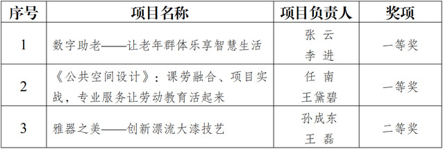 近日,江苏省高等教育学会公布了2022年江苏省高等学校劳动教育优秀实践项目评选结果,学院共3个项目获奖,其中一等奖2项,二等奖1项(名单如下)。同时,学院获申报优秀组织奖,所获成绩在高职院校中名列前茅。