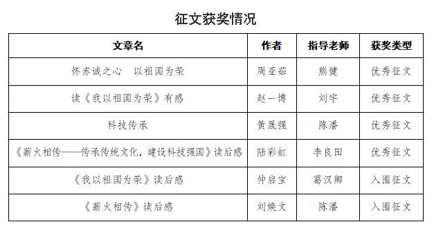 在2024年省教育系统关工委主题教育读书征文活动中有6篇作品获奖,其中,优秀征文4篇、入围征文2篇,学校关工委荣获“表扬单位”荣誉,全省仅有13所高校关工委获此荣誉。
